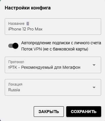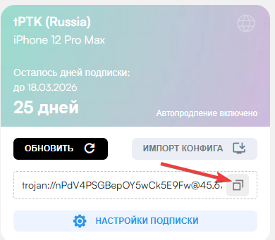 Перейдите по ссылке в наше мини-приложение и измените настройки подписки, как показано на скриншоте ниже: протокол «tPTK», регион «Russia», а ззтем сохраните настройки подписки.