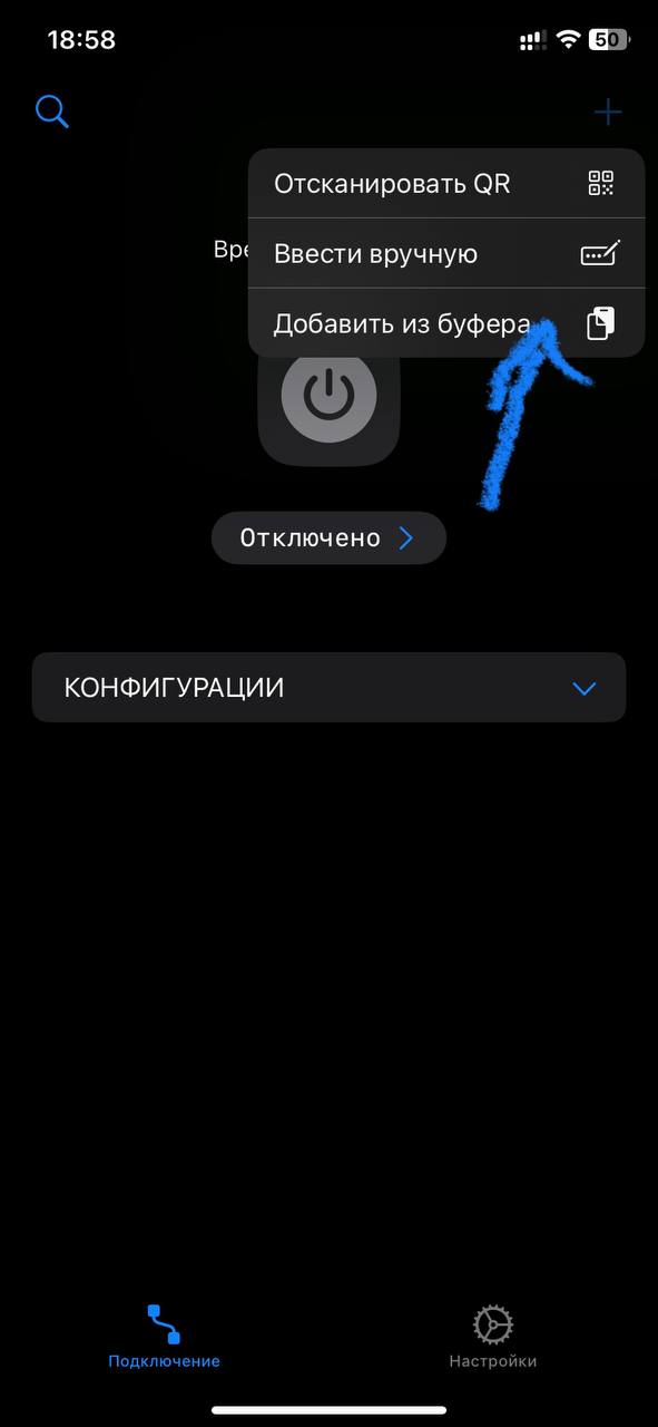 В нашем мини-приложении нажмите «Импорт конфига». Если это не сработает, его необходимо скопировать и вставить в приложение, а зачем подключиться к конфигурации. Готово — трафик идёт через VPN.