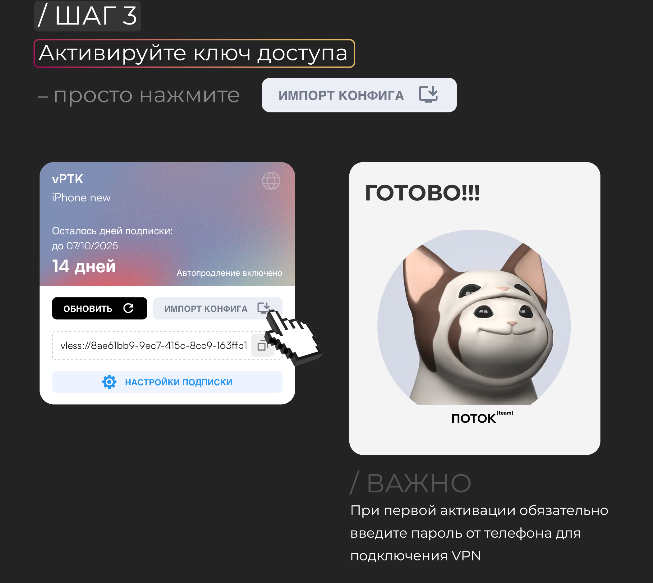 Подключение через v2RayTun и другие клиенты для протоколов vPTK/tPTK.